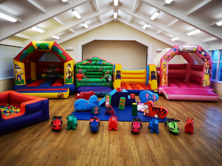 Enjoy 12 varied soft play shapes for interactive and imaginative play. four ride-on toys for kids to ride, another four Happy Hopperz to bounce around on, a step and slide set for added adventure, your choice of a bouncy castle, plus an amazing ball pool for plenty of sensory delights!