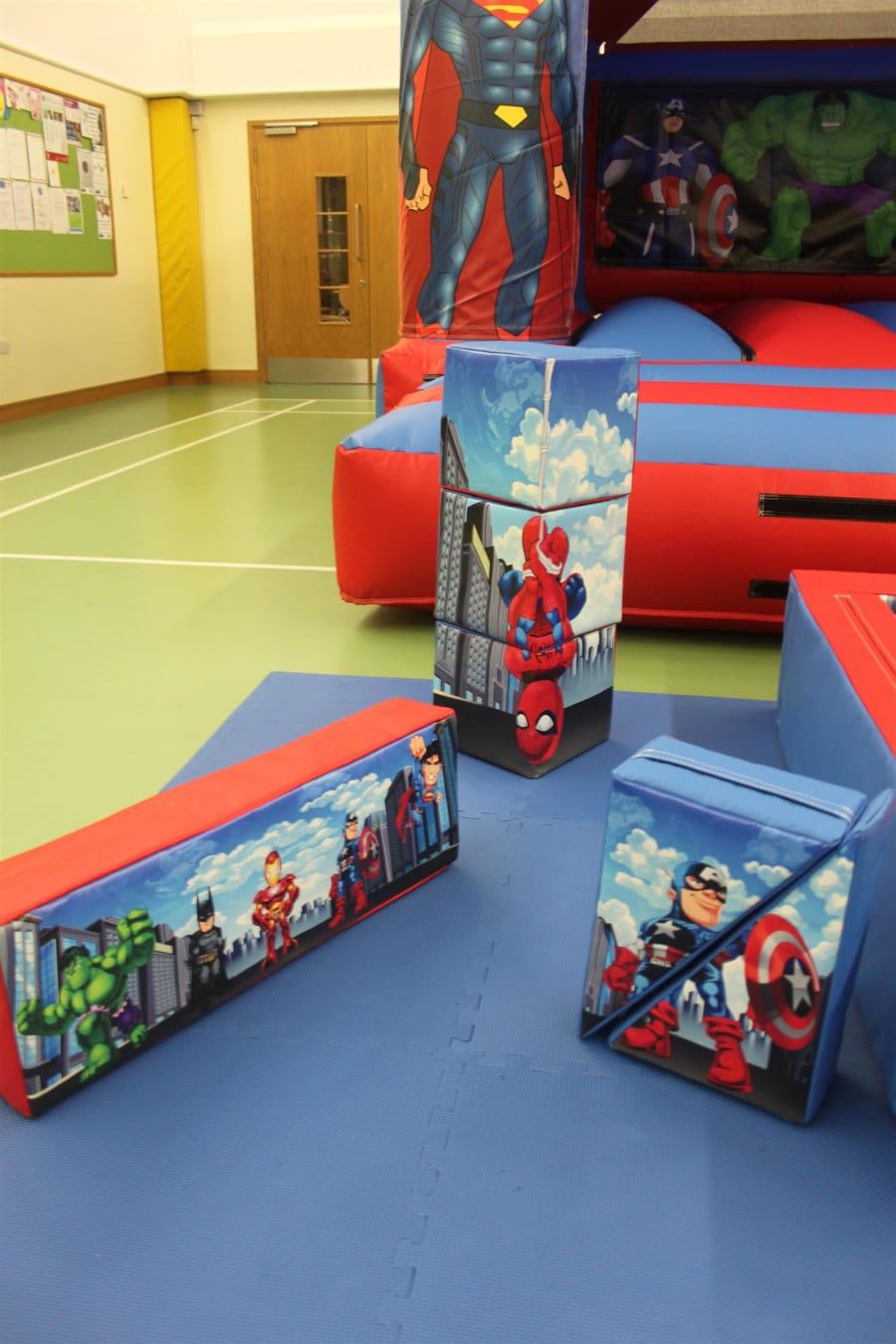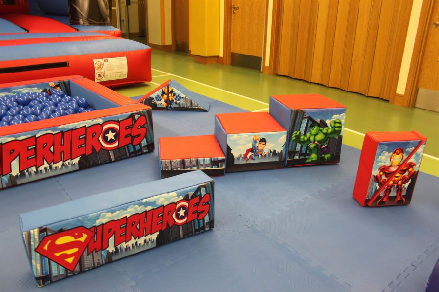 - 18 soft play shapes featuring popular superheroes such as Iron Man, Wolverine, Superman and more. Your toddler can stack, sort, build and play with these colourful and durable soft play pieces.