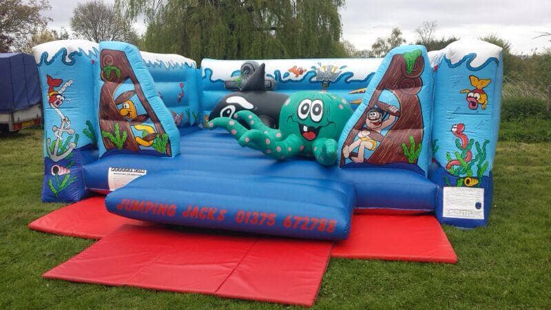 This is one of our team member's favourite bouncy castle. We love children's faces when they see it. This is another castle where photos do simply not do it justice. This interactive play unit, has inflatable under the sea creatures lurking on its ocean bed.
