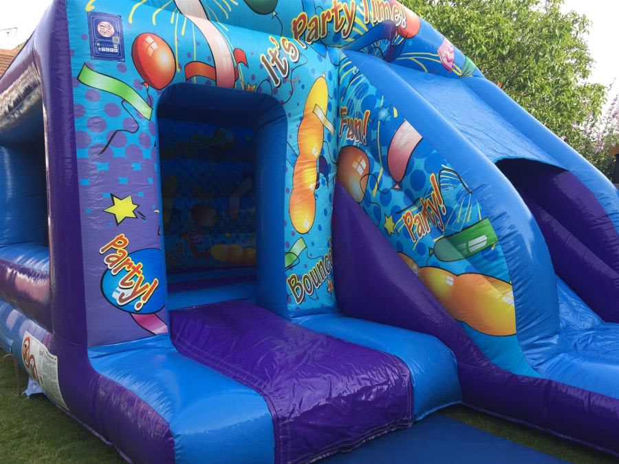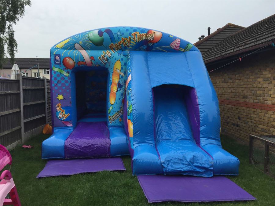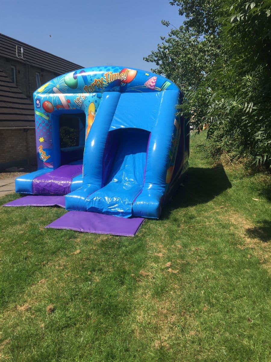 With its vibrant blue colour and a playful party time theme featuring balloons and streamers, the bouncy castle sets the stage for a lively celebration. Boys and girls alike will feel at home bouncing and partying in this fun inflatable.